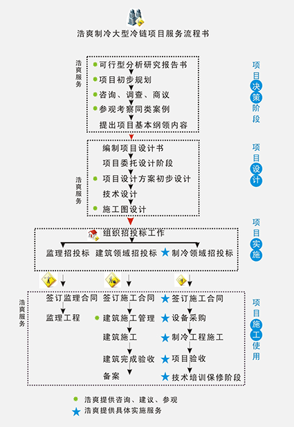 浩爽制冷業務人員前期充分了解業主的項目意圖,充分溝通并指導客戶規劃冷庫工程,以求以合理具市場競爭力的方案,設計符合業主及投資方的需求。